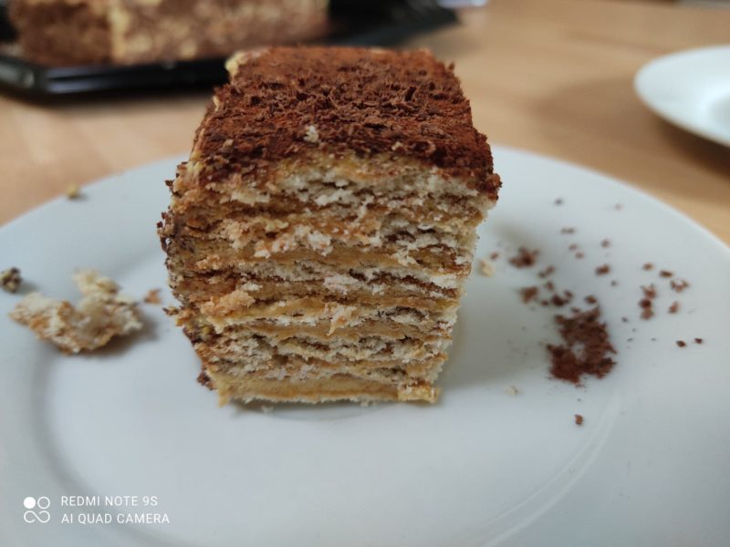 - Sur la dernière couche, saupoudrez de cacao amer.